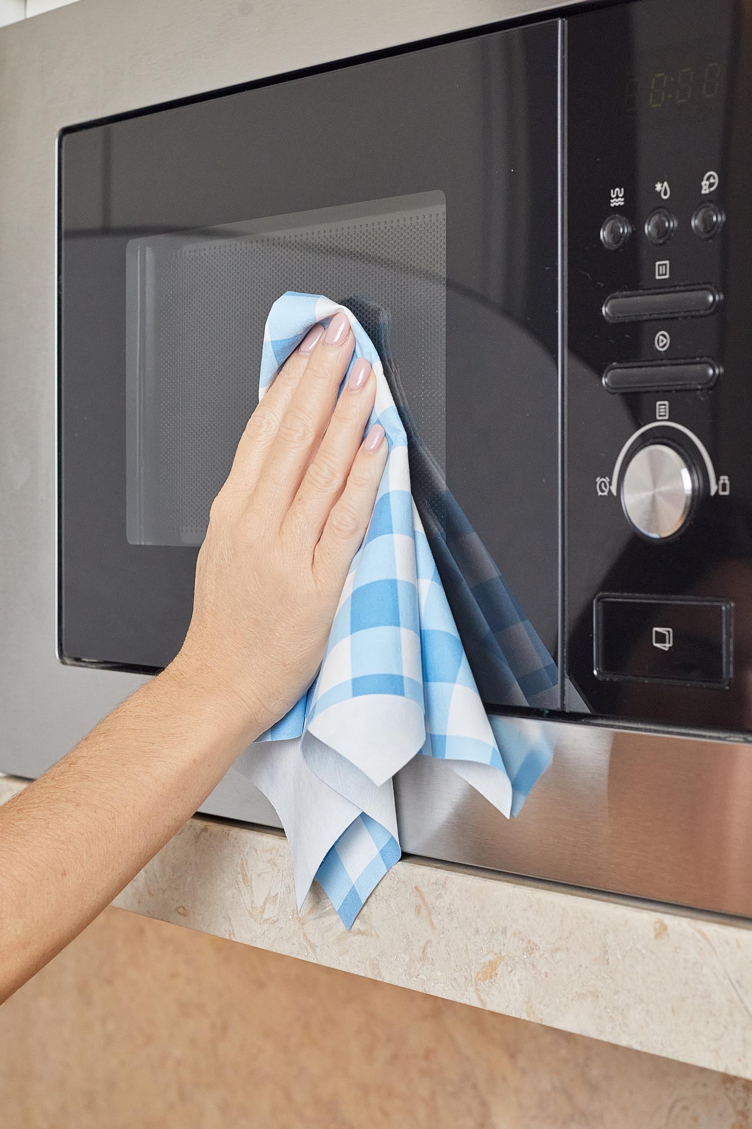 - Nettoyage : humidifiez légèrement le torchon, essorez et essuyez vos surfaces (verres, plans de travail, inox)